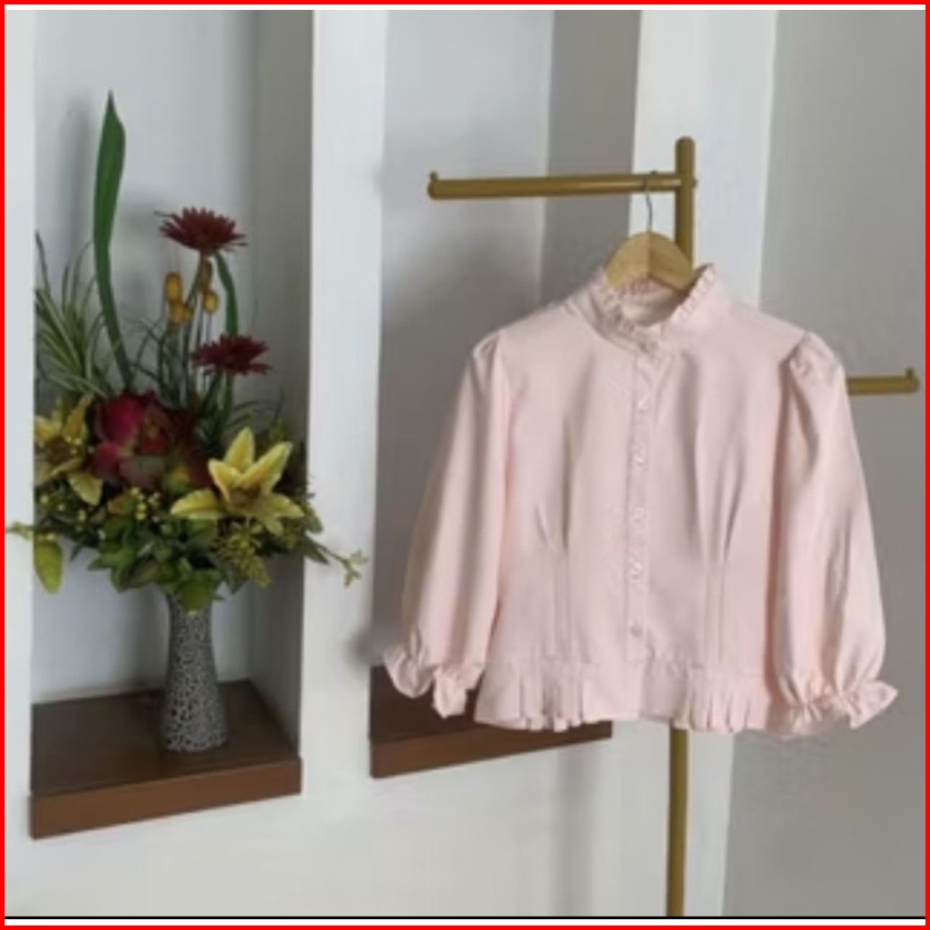 Atasan Wanita Dengan Kerah Rempel Dan Lengan Balon - Atasan Blouse Korea