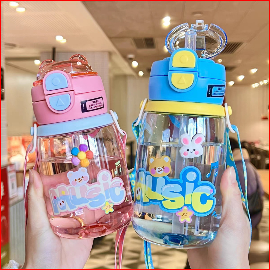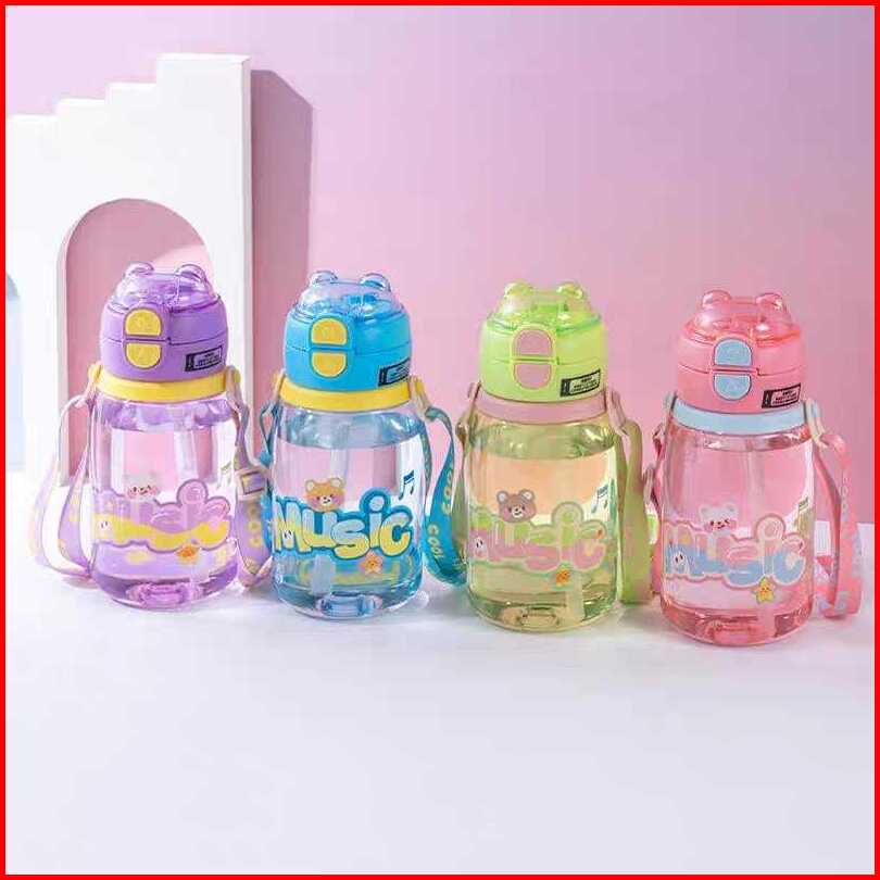 Botol Music Dua Cara Minum Tempat Air Minum Anak Sekolah Tali Panjang 580ml 3321