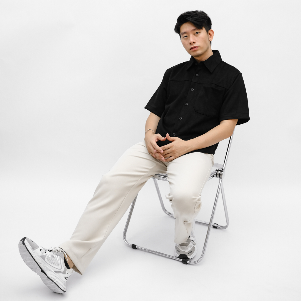 SANVANINA Gangnam Button Suede Shirt | Kemeja Semi Boxy Atasan Berkerah Lengan Pendek Pria Korea