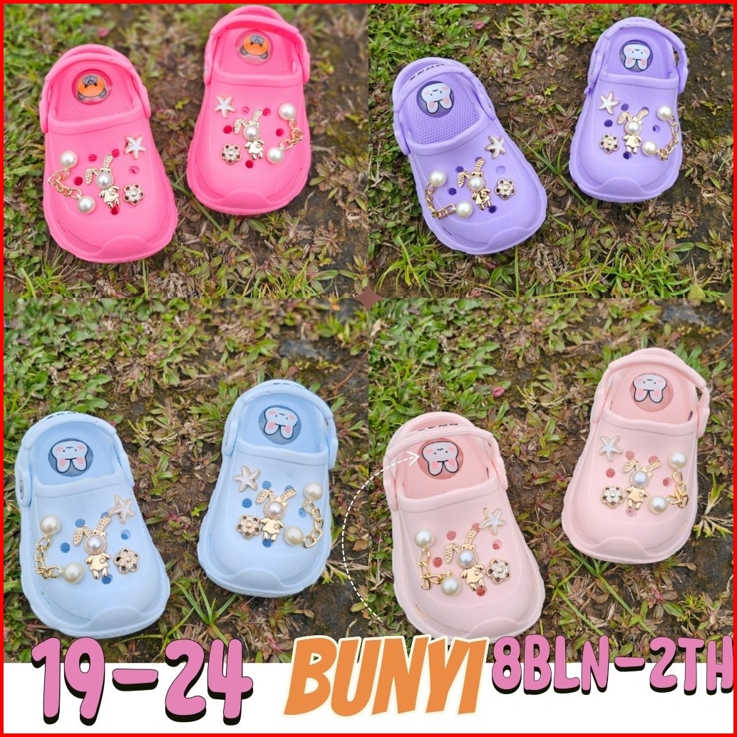 Sepatu Sandal Anak Perempuan Selop Tali Belakang Sndal Anak Bunyi Citcit New Acc Rantai Rabbit -1058b