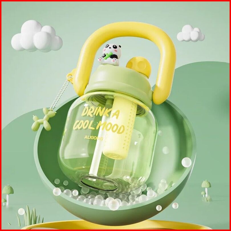 Botol Minum Viral Aesthetic Dua Cara Minum Karakter Panda Korea 800ml Sedotan Handle
