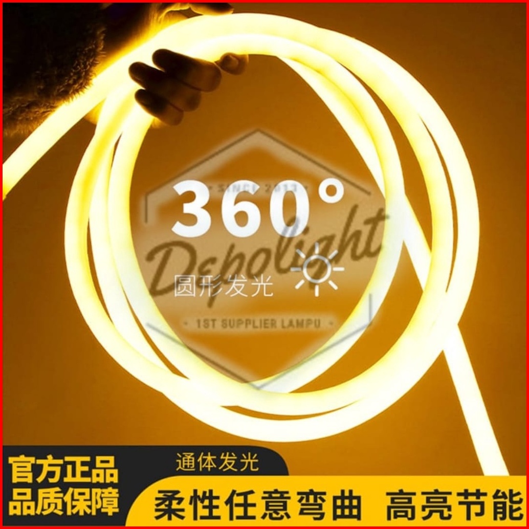 Lampu Neon Flex Bulat Paket 5m 10m Waterproof Nyala Full Body 360derajat Ip65 Langsung Colok