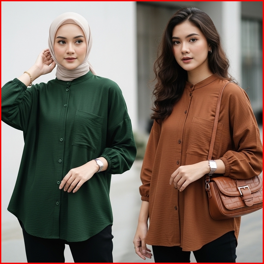 Hitam, Putih, Dusty Pink, Lavender, Mustard, Avocado, Hijau Tua, Denim, Terakota, Merah, Fuschia, Coklat