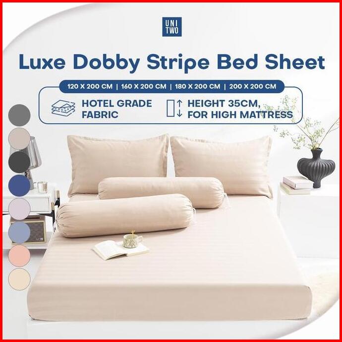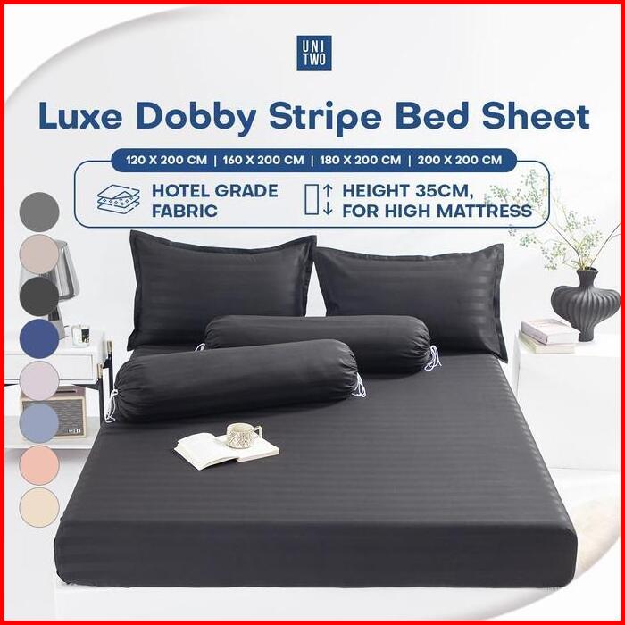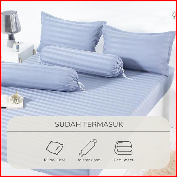Ready Unitwo Luxe Seprei Set Only Seprei Set Hotel Motif Salur Dengan Sarung Bantal Dan Guling Karet Keliling Tinggi 35c