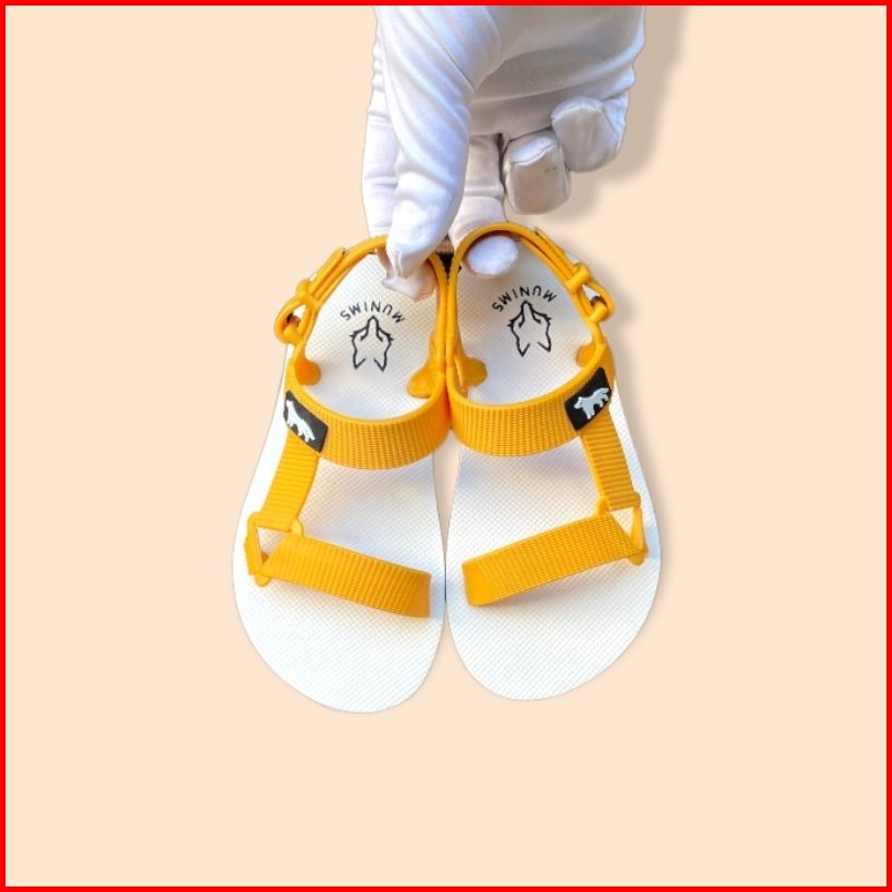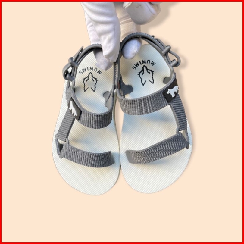 Sandal Anak Munims Tali Anti Slip Empuk Dan Nyaman Dikaki Sendal Anak Balita Laki Perempuan White On Grey