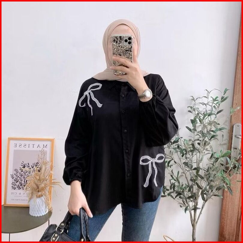 Terlaris Luna Blouse Kemeja Bordir Oversize Wanita Terbaru Rayon Twill Premium