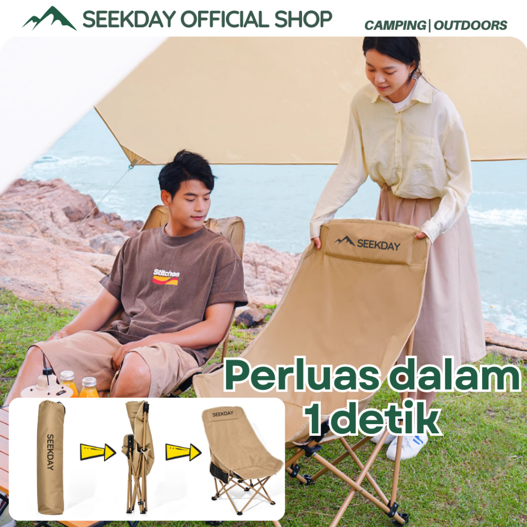 Seekday Kursi Lipat Sandaran Outdoor Tinggi Dengan Sandaran Kepala Busa Kursi Camping Kuat/Lebar/Tebal Beban 180kg