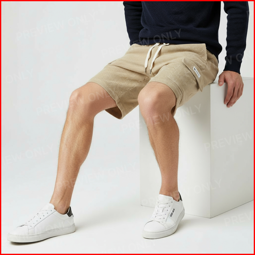 Humanly.co - Celana Corduroy Pendek Corduroy Cargo Pendek Pria