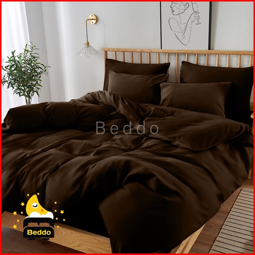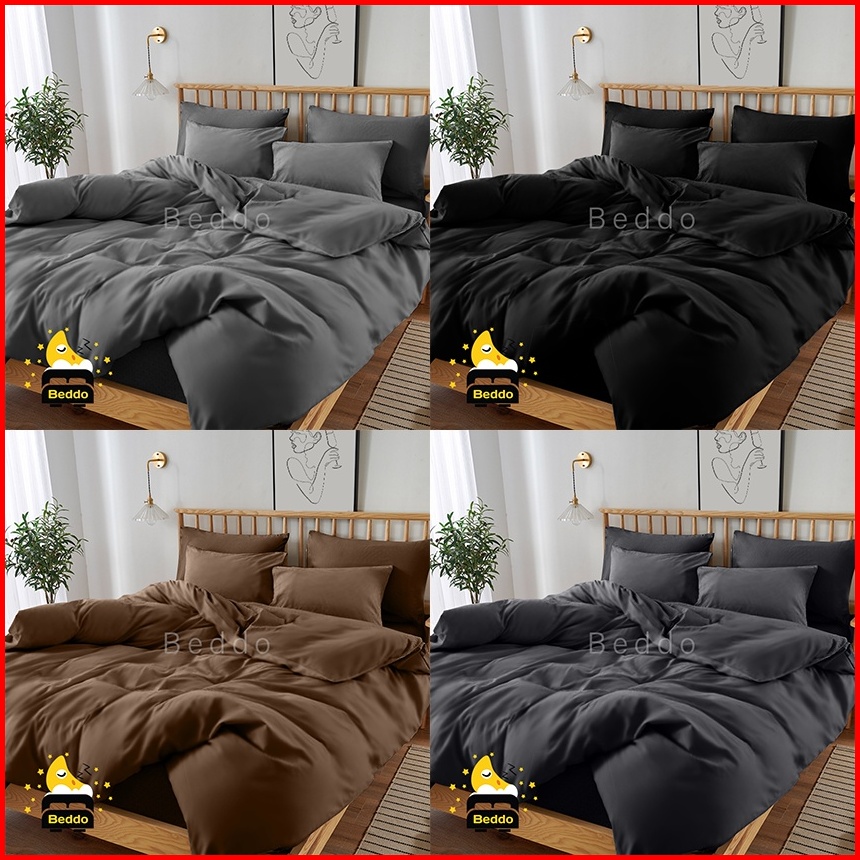 Beddo Sprei Set 160x200 Queen Polos Minimalis Microfiber Seprai Plain Grey Black White Navy Purple Mustrad Peach Silver