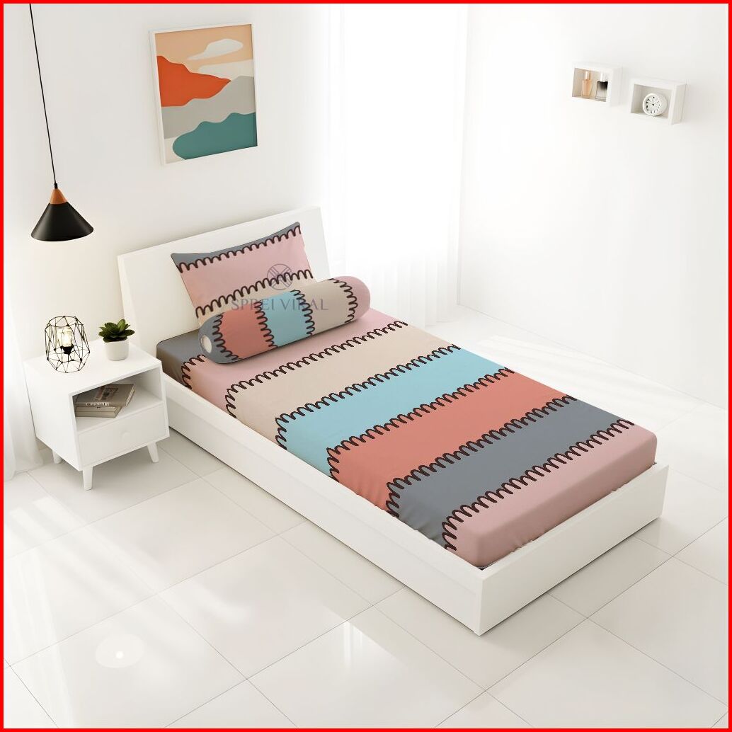 Sprei Katun Disperse Premium Motif Aesthetic Modern Ukuran 90x200 Sudut Karet Tidak Mudah Kusut
