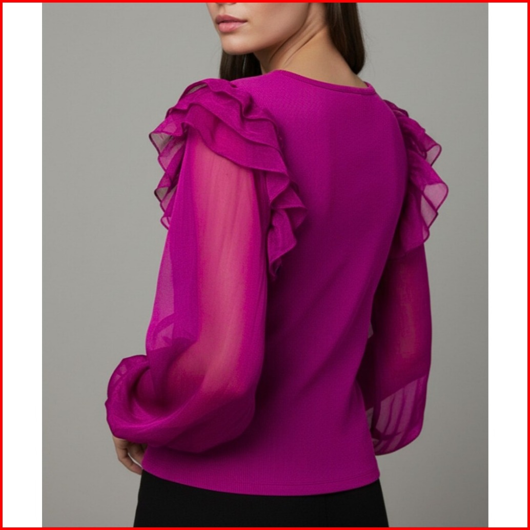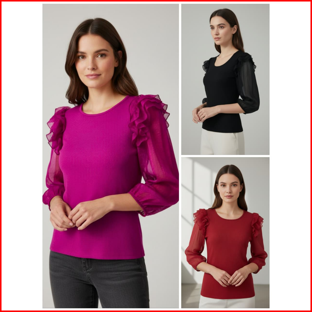 Blouse Cato Knit Ruffle Sleeve Organza Shirt