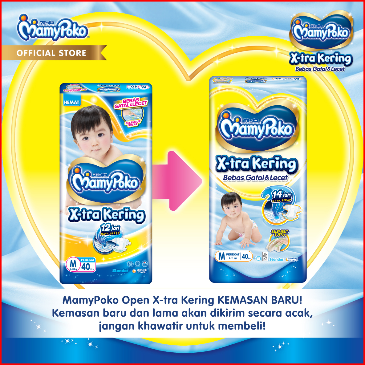 Mamypoko X-tra Kering - M 40 - Popok Perekat Newborn Bayi Baru Lahir