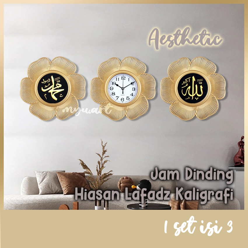 Jam Dinding Kaligrafi Aesthetic Lafadz Allah Muhammad Hiasan Rumah Dinding Ramadhan Islami