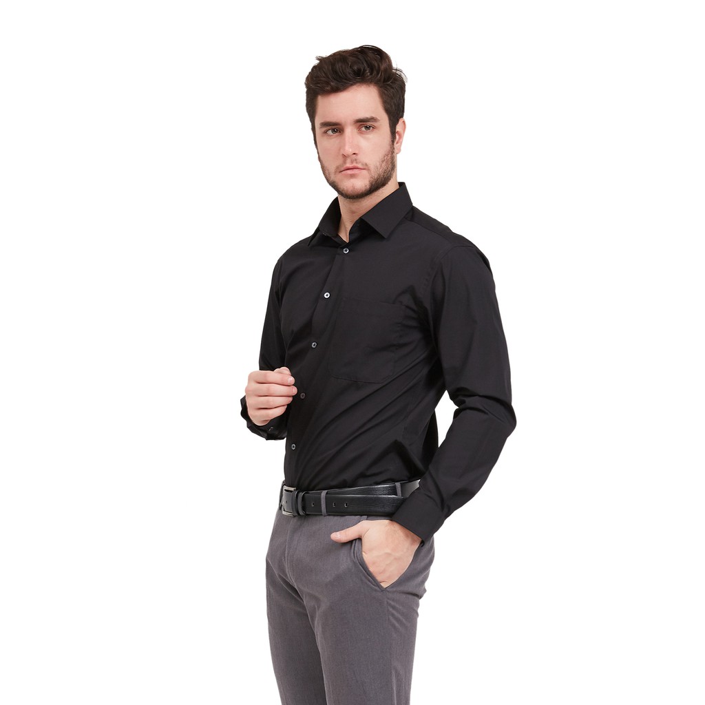 Alisan Kemeja Lengan Panjang Polos Slimfit Hitam PLSSFLSHITAM