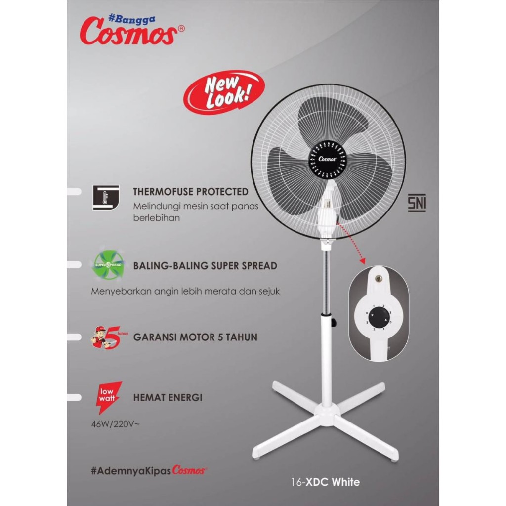 Kipas Angin COSMOS 16 XDC Hitam / 16 XDC W Putih kipas angin berdiri / Stand Fan murah 3 kecepatan 46 Watt