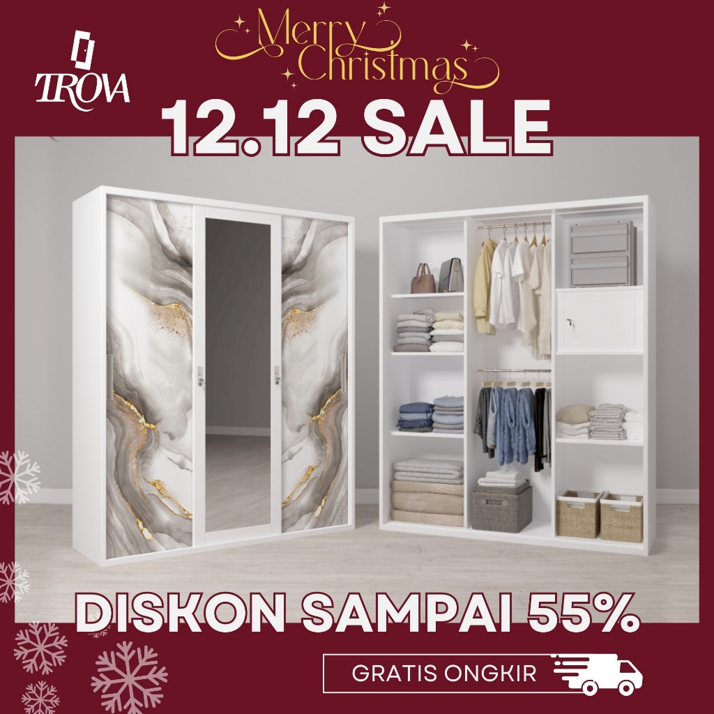 Trova Official Lemari Pakaian Besi Sliding 3 Pintu 2 hanger 150cm - Lemari Pakaian Modern Minimalis