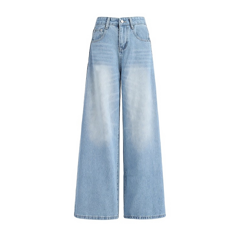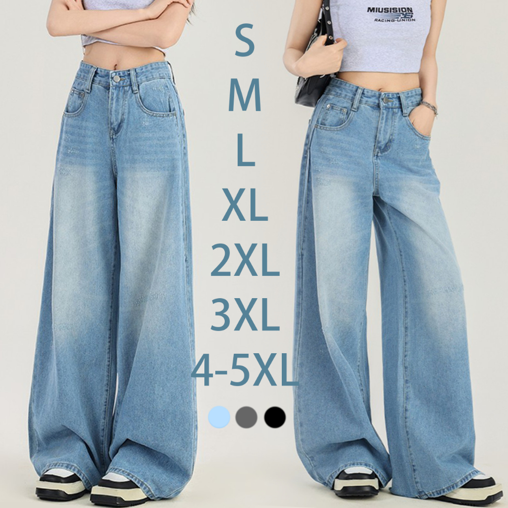 Jumbo S-5Xl Jeans Ukuran Besar Jeans Biru Wanita Jeans Longgar Kaki Lebar Jeans Pinggang Tinggi Premium