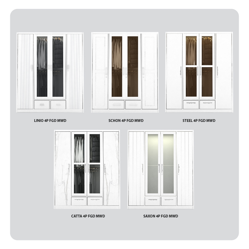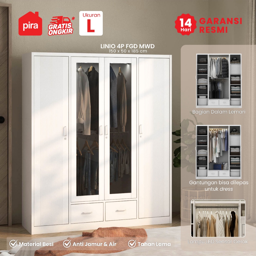 PIRA - LINIO 4P FGD MWD Lemari Pakaian Besi 4 Pintu dengan Laci dan LED