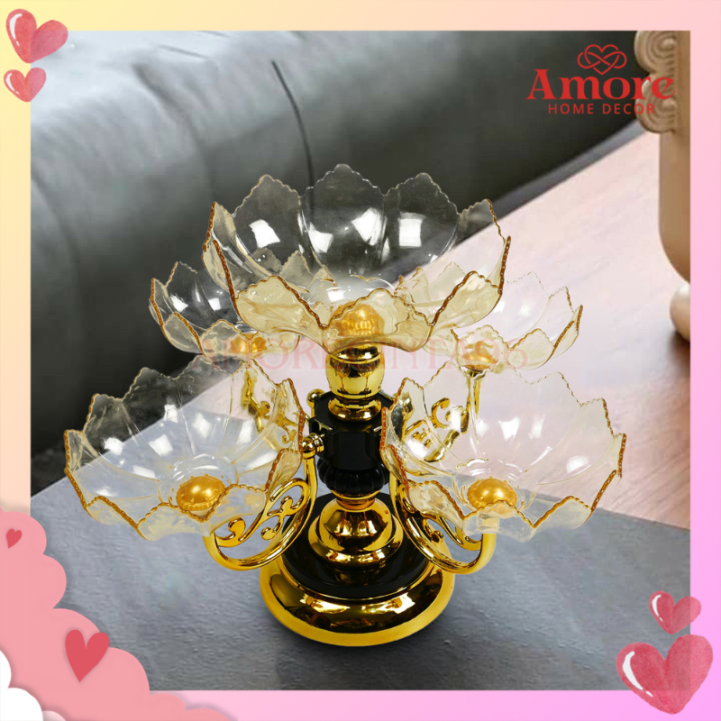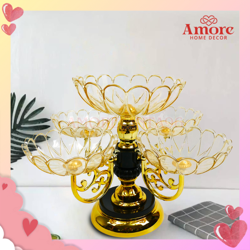 Piring Aesthetic Piring Buah Hidangan Crystal Plastik Bisa Putar / Wadah Buah 2 Tingkat 5IN1 / Tempat Cemilan permen dapat diputar 360 Derajat