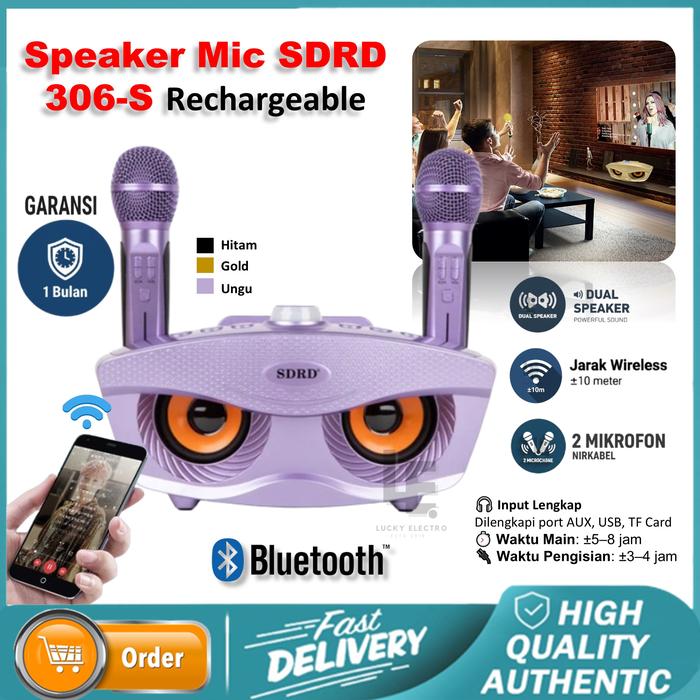 SPEAKER MIC SDRD 306S – SPEAKER KARAOKE BLUETOOTH DUAL MIC WIRELESS SUPER BASS - BLACK
