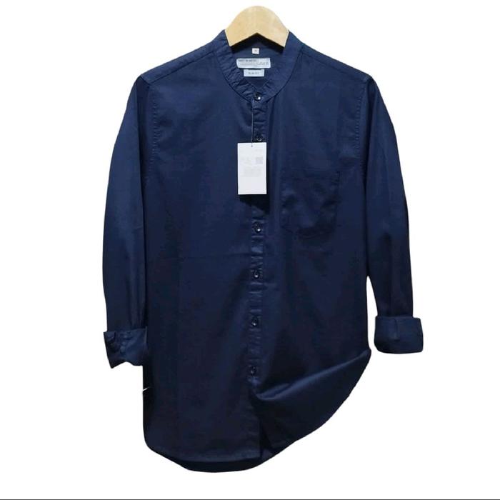 Kemeja Z4R4 Koko Sanghai Premium Slimfit Lengan Panjang Pria Katun Hitam Casual Twill Lembut Muslim - Size M-5Xl - Nyama