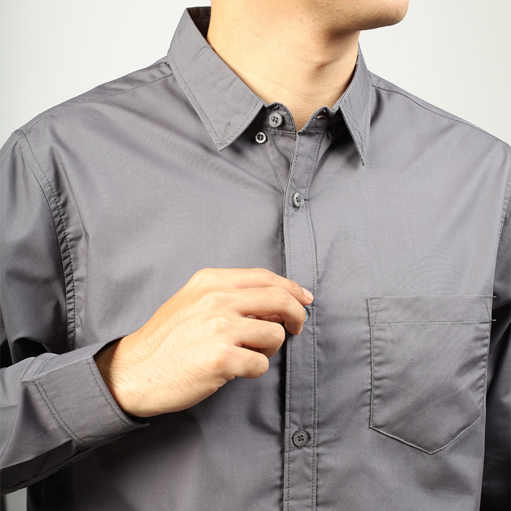 MARUSO Kemeja Lengan Panjang Polos Pria Formal CATCHY 1 Abu Tua