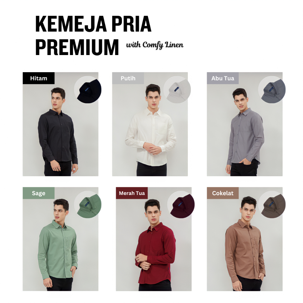 CASUALUXE Kemeja Pria Lengan Panjang Polos Putih Broken White Linen Softy Slimfit