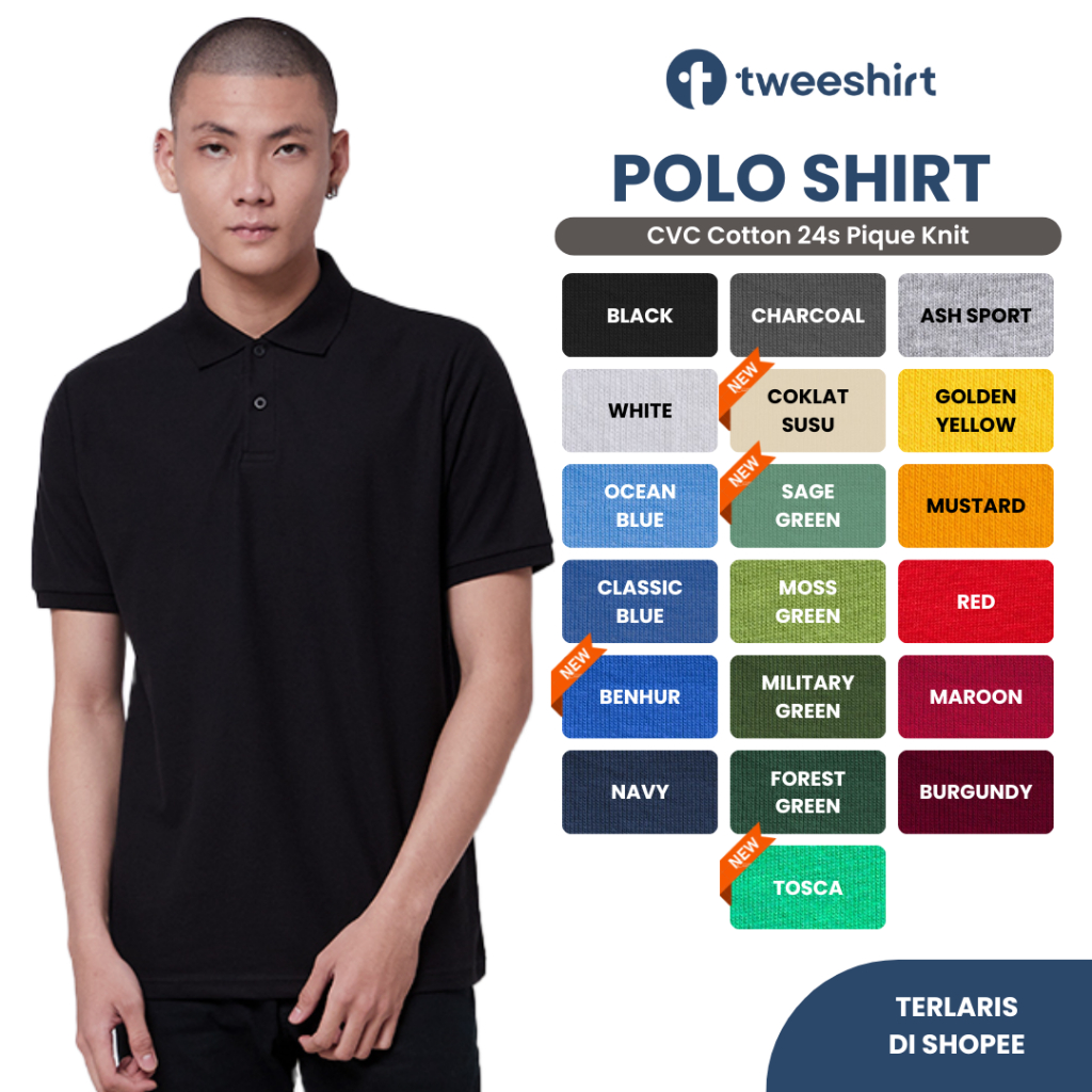 Kaos Kerah Polo Shirt Cotton Cvc Pique Knit 24S Yarn Spindle Maxi Soft