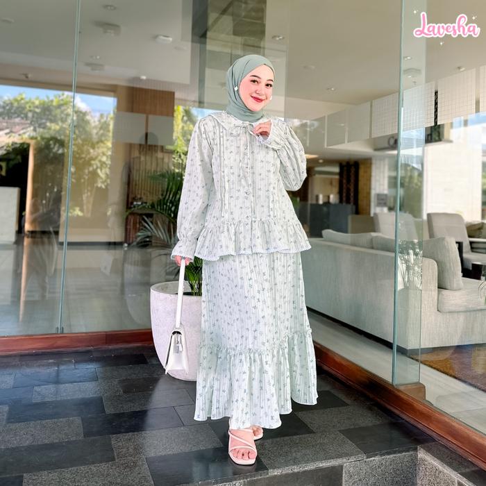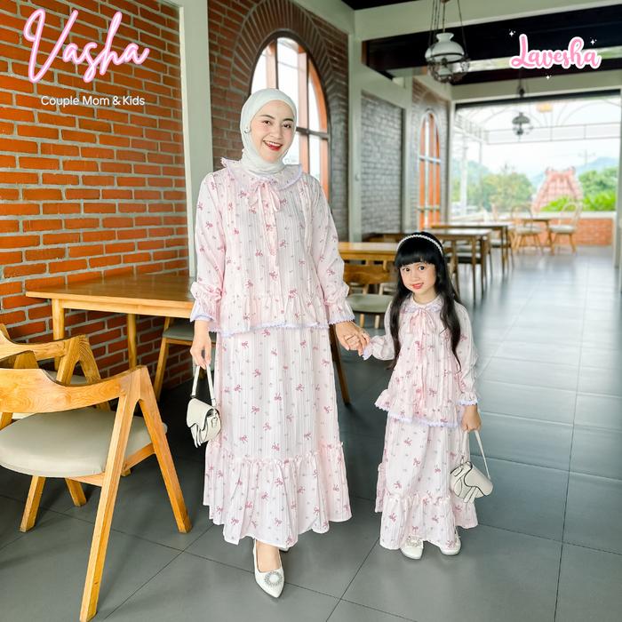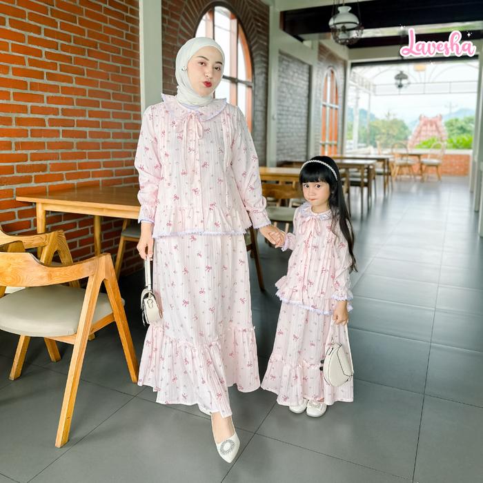 Lavesha Kids - Vasha Oneset Ibu Dan Anak (Dijual Terpisah) Setelan Rok Crinkle Elora Premium Motif Pita Cantik Muslim Se