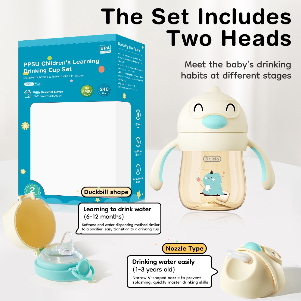 Dr.isla Botol Minum Bayi PPSU Botol Minum Anak Bpa Free 240ML Botol Susu Training Cup WC35