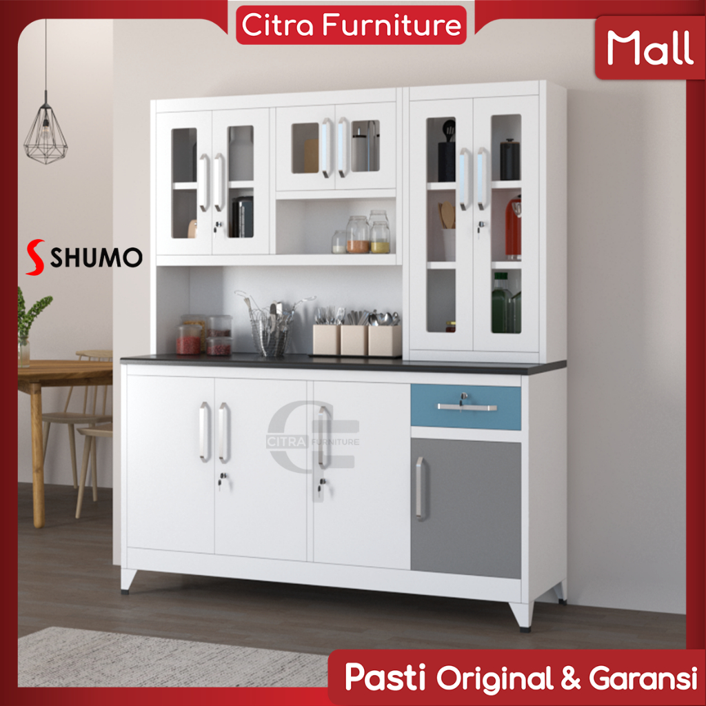 Lemari Dapur 4 Pintu Minimalis Besi | Kabinet Rak Piring | Kitchen Set Besi DAKOTA Series