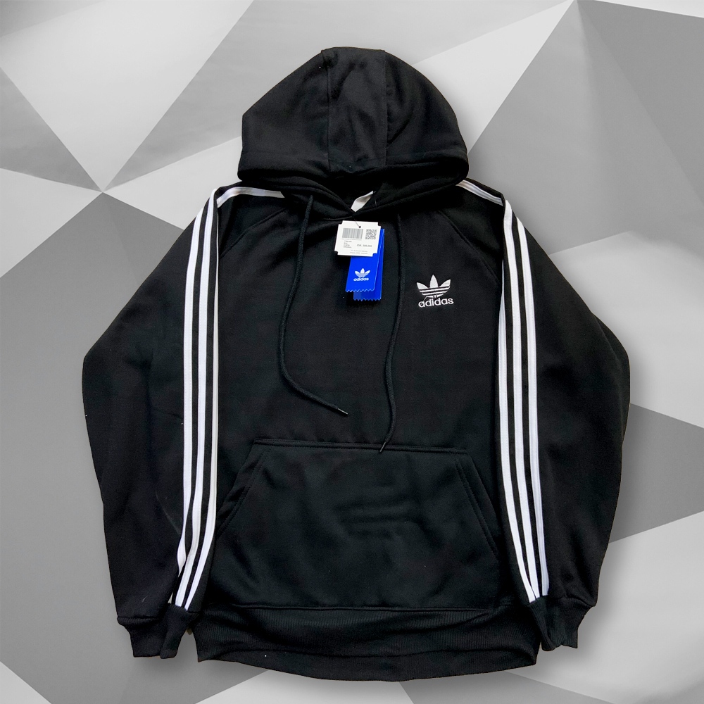 Bisa | Hoodie Adidas Stripe Basic Black Katun Premium