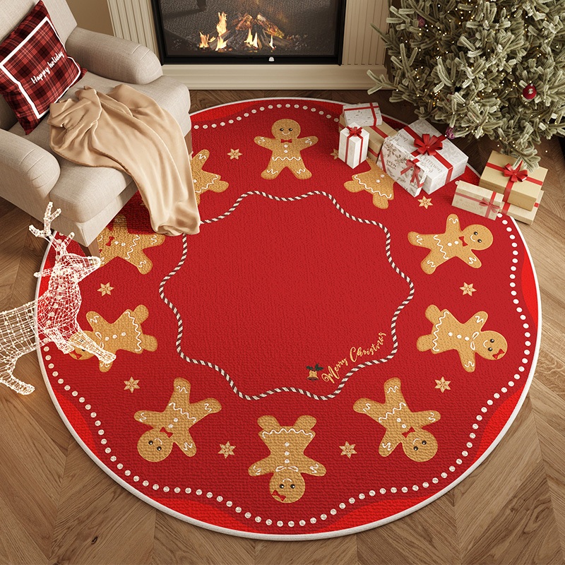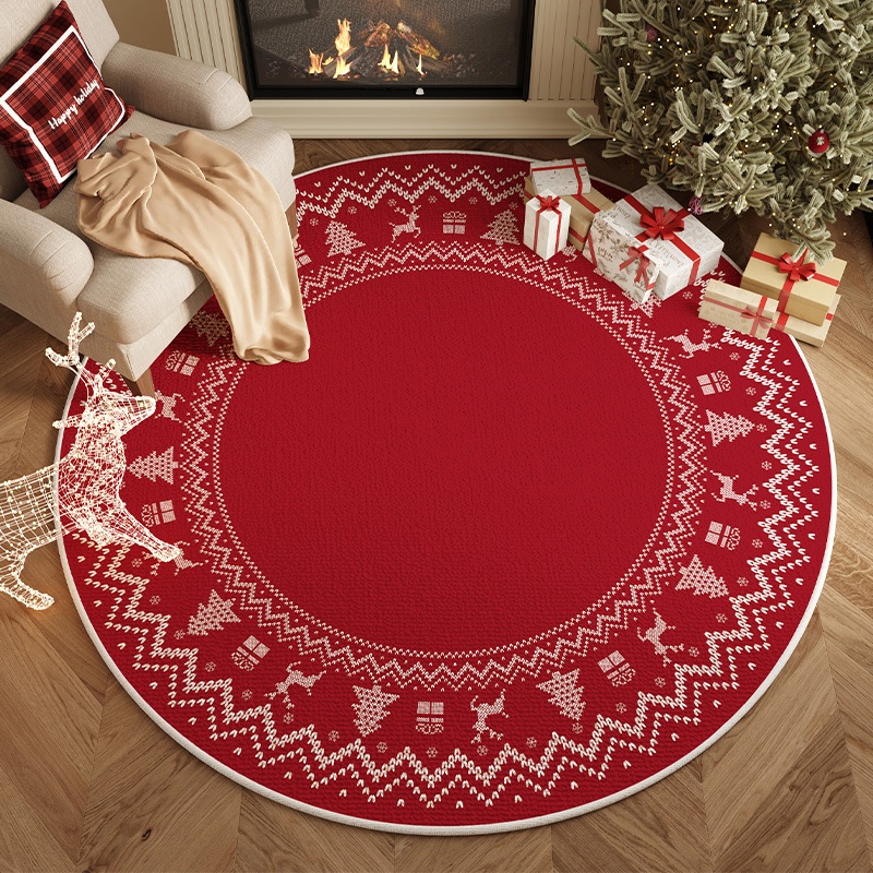 Maison Loine Karpet Bulat Natal Motif Plaid Christmas Pattern Alas Lantai Dekorasi Rumah