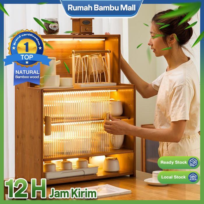 [RBM]Rak Dapur Rak Bumbu Lemari Dapur Dengan Pintu Rak Penyimpanan Rak Multi-Lapisan Lemari Piring