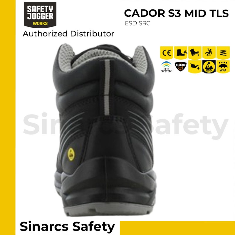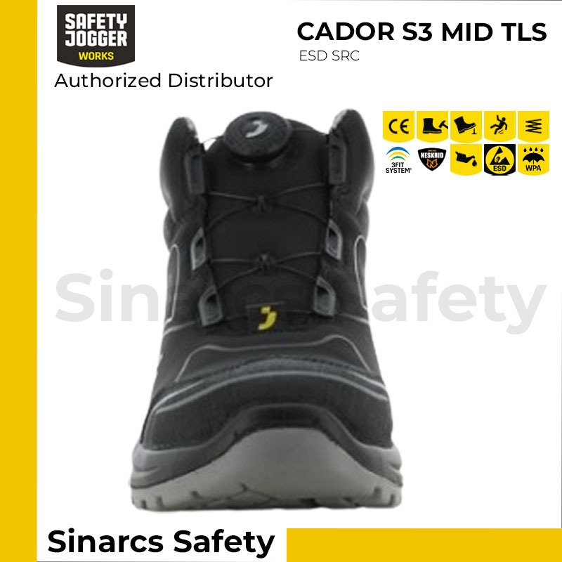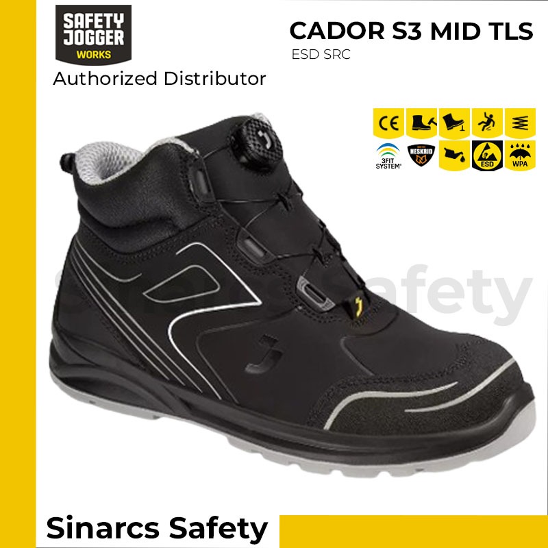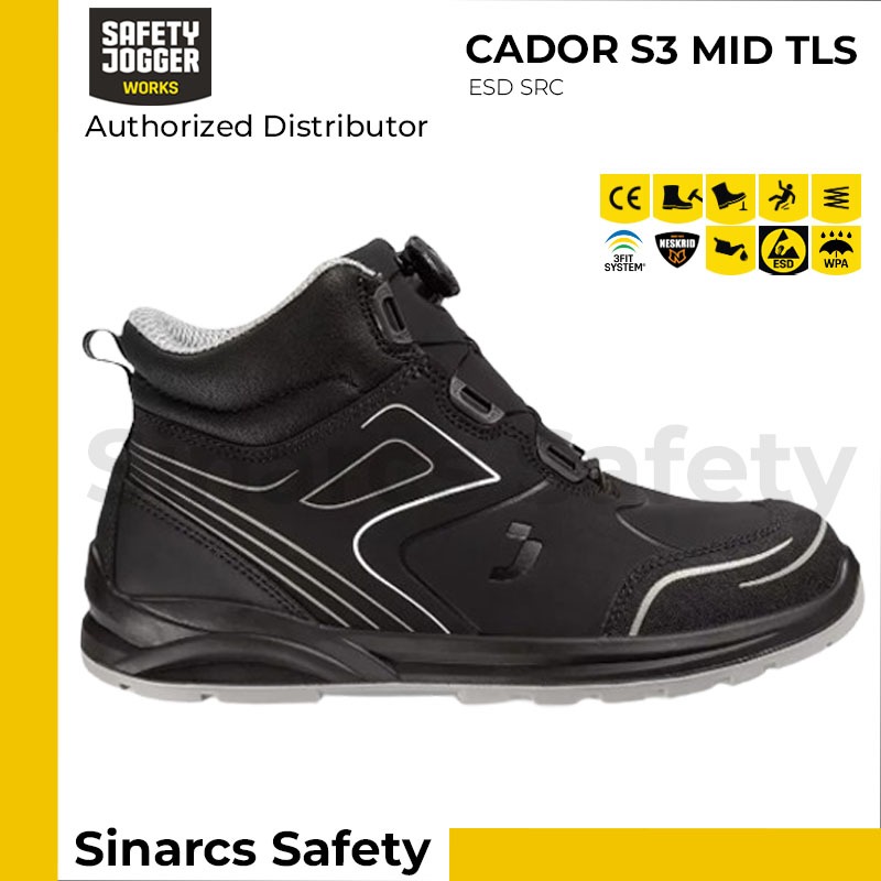 Sepatu Safety Jogger CADOR S3 Mid TLS - Black / Hitam