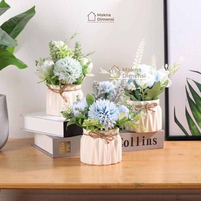 1 set vas bunga keramik artificial aesthetic hiasan meja dekorasi ruangan makna dimensi Hijau Plastik Pot - kuning