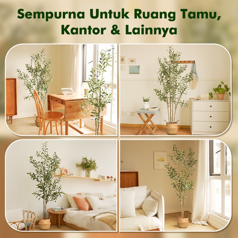 MODOFO Pohon Zaitun Artificial 1.2M/1.5M/1.8M 5A Dengan Port Hiasan Dekorasi Ruang Tamu Bambu Palsu Ruangan Zaitun Imitasi Pohon hias palsu