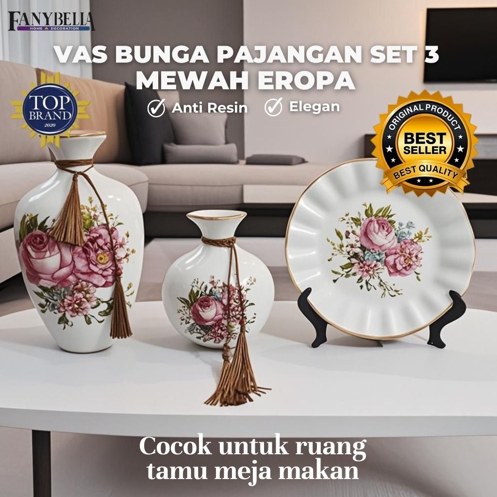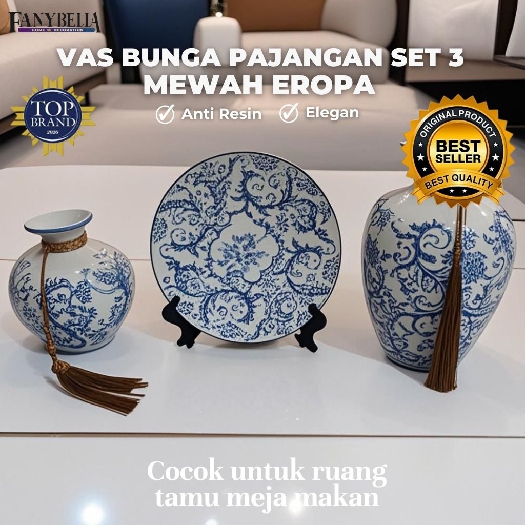 Pajangan Set 3 Vas Guci Vas Bunga Keramik Dekorasi rumah Import