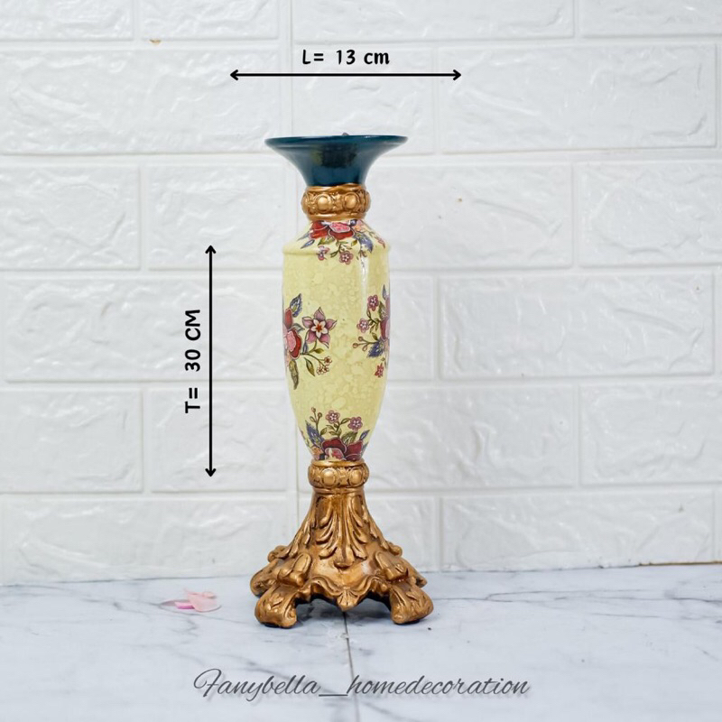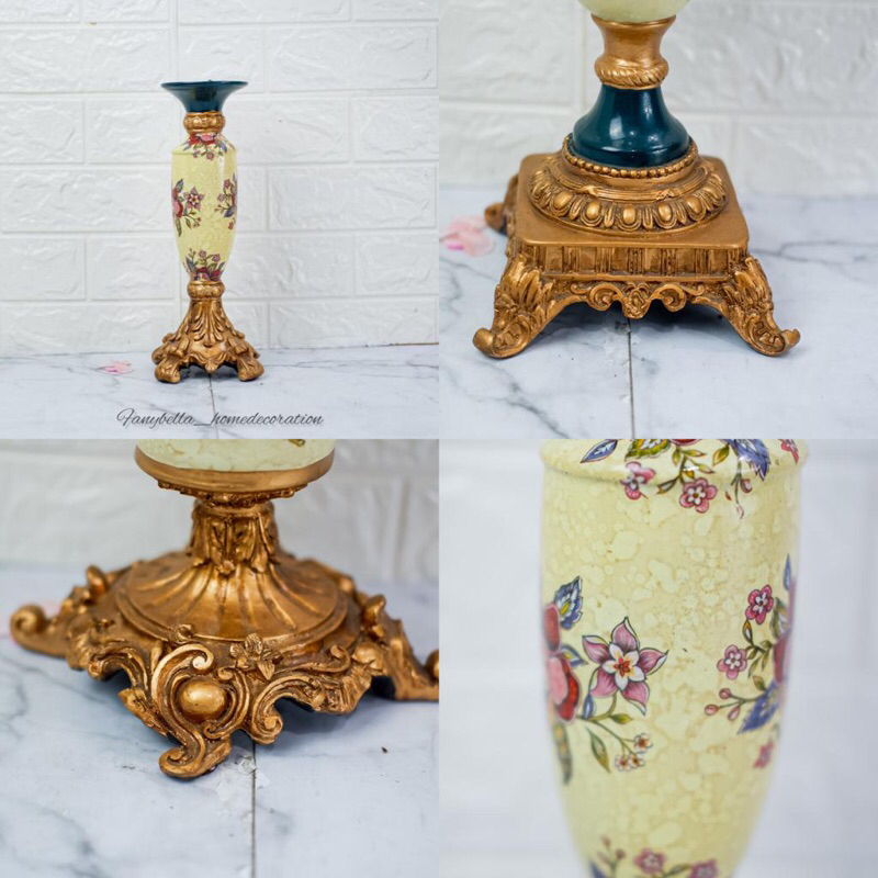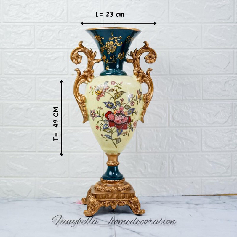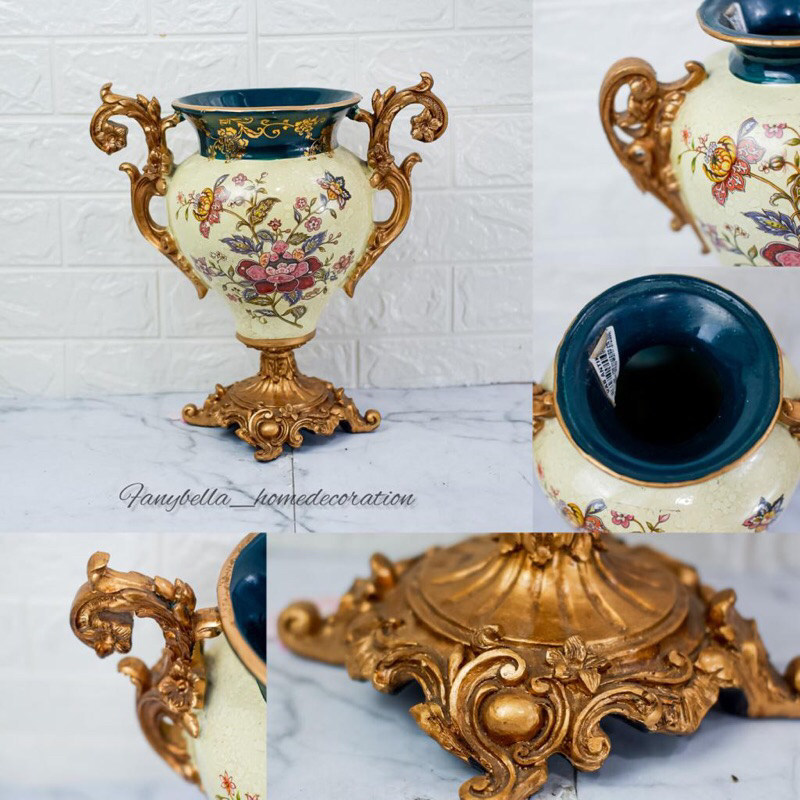 Vas Bunga Keramik Klasik Antik Guci Hijau Emas Motif Bunga Porselen Dekorasi Hiasan Rumah