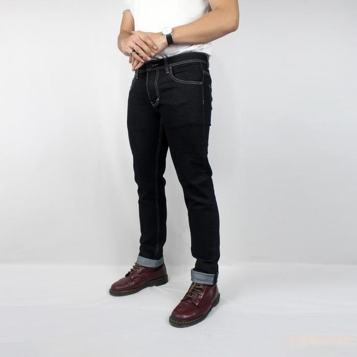 CELANA JEANS PRIA PANJANG SLIM FIT DENIM STRETCH ELASTIS BLACK GARMEN - BLACK GARMENT, S