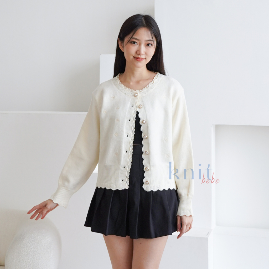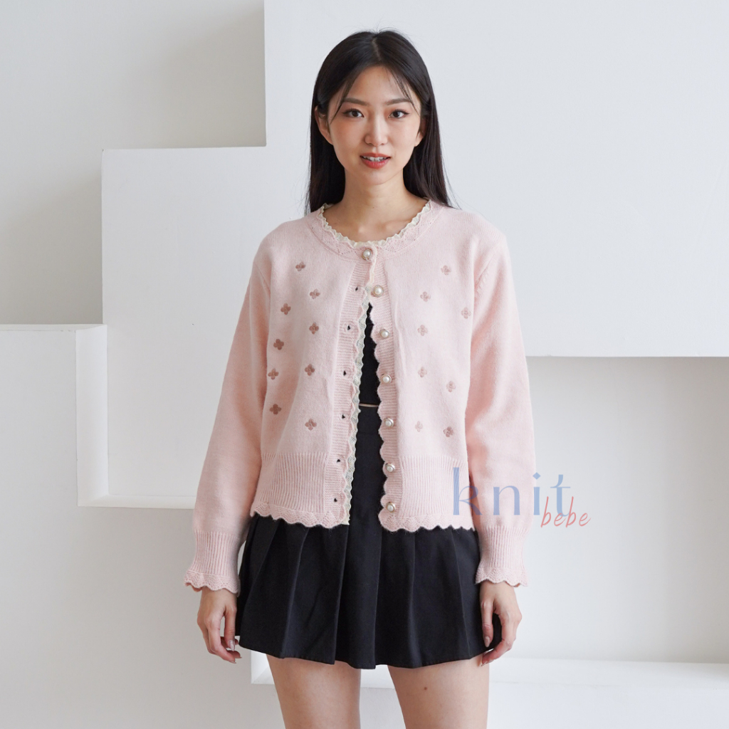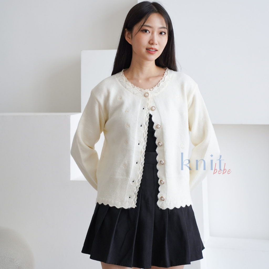 Knitbebe - Mikyung Atasan Cardigan Rajut Knit Top Floral Bunga