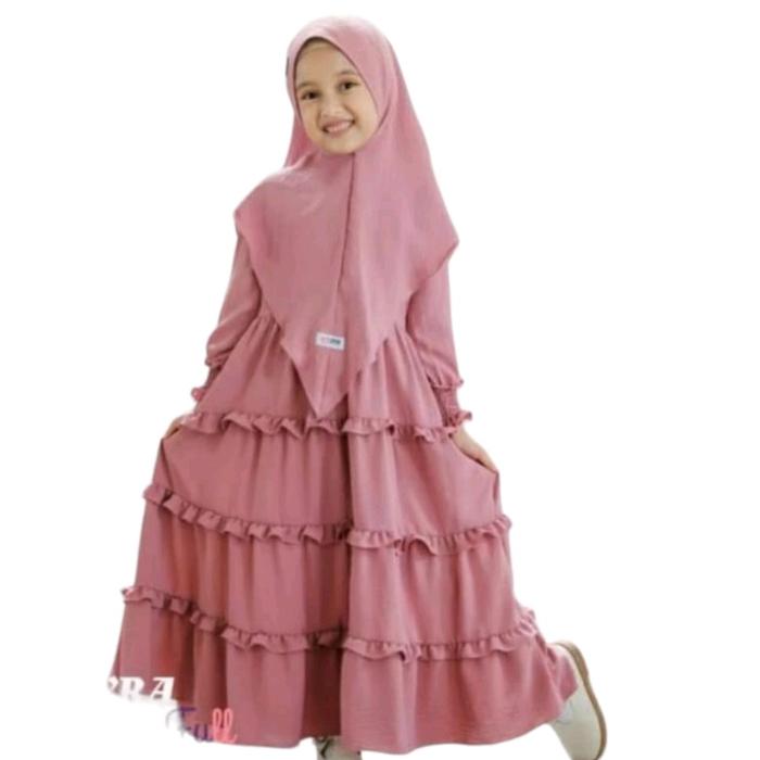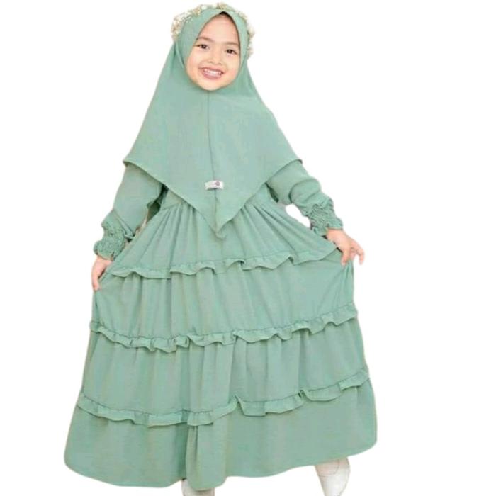Gamis Anak Perempuan Terbaru Crinkle Airflow Setelan Baju Dress Lebaran Shakila Tanggung Remaja Syari Hijab Lebar Cantik