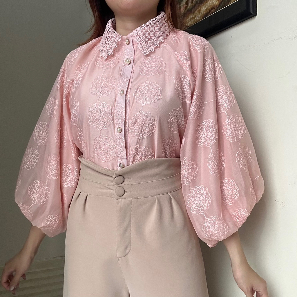 Liliana Top Atasan Blouse Kemeja Wanita Kerja Organdi Bordir Korean Style By Biel The Label