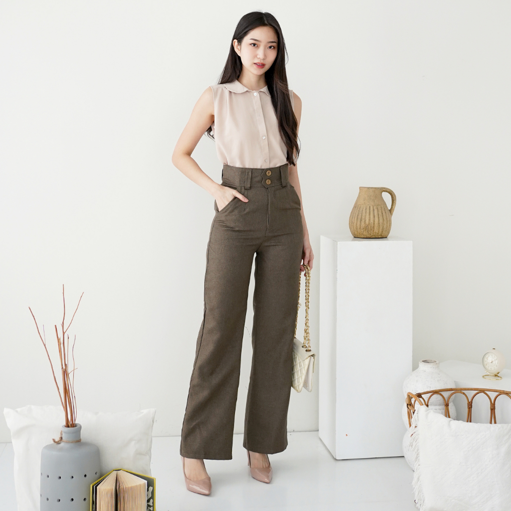 Livery Veyn - Flota Pants Highwaist Flared Cutbray Pants Long Trousers Semi Formal Korean Look