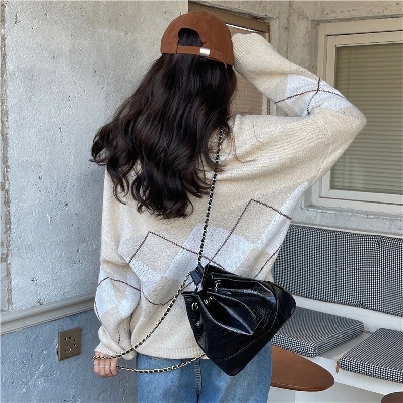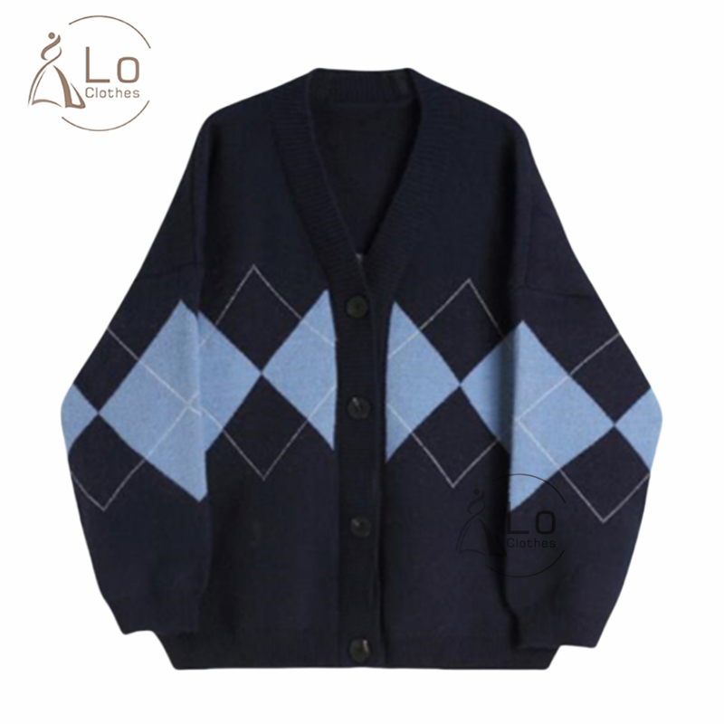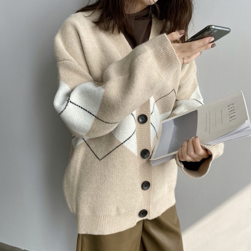 Lo Clothes Cardigan Rajut Import Cardigan Korean Style Outer Wanita Soft Knit Motif Plaid Rajut Oversize