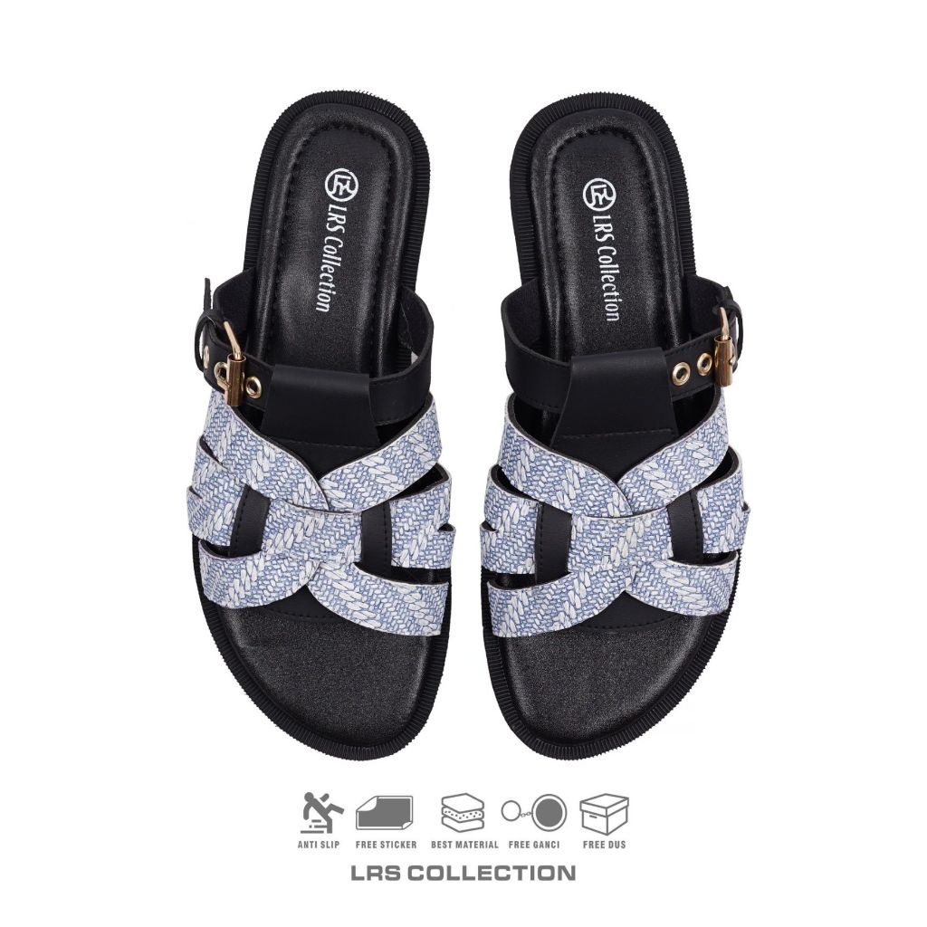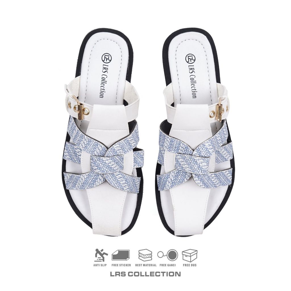 Lrs Collection - Sendal Wanita Kanvas Nyaman Mewah Sandal Flat Wanita Amara - White Sky Edition