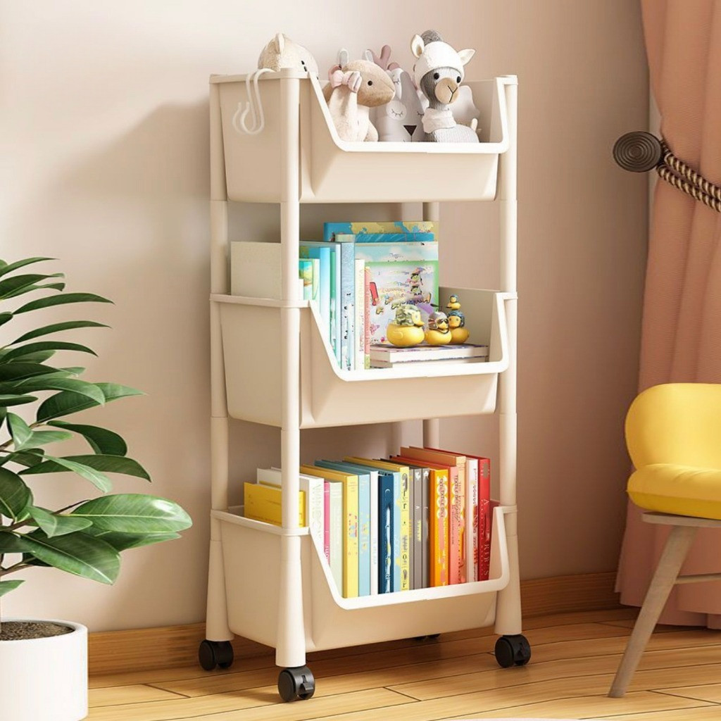 Rak dorong plastik rak dapur serbaguna rak penyimpanan buku rak susun rak toilet kamar mandi portable dengan roda