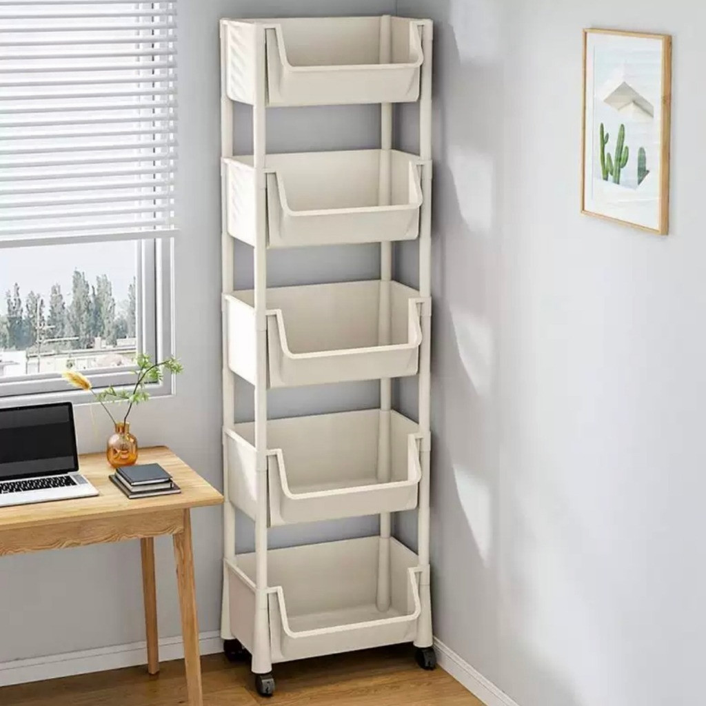 Rak dorong plastik rak dapur serbaguna rak penyimpanan buku rak susun rak toilet kamar mandi portable dengan roda