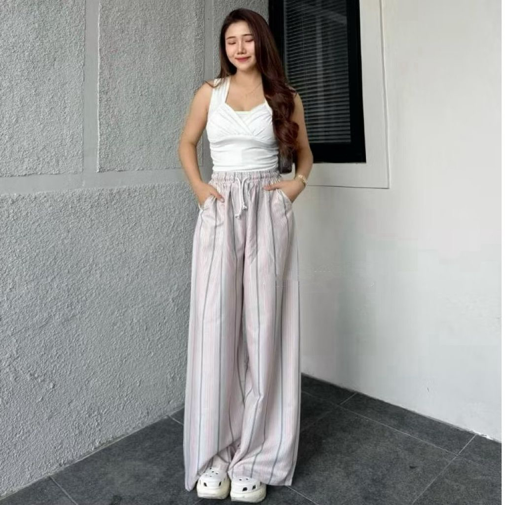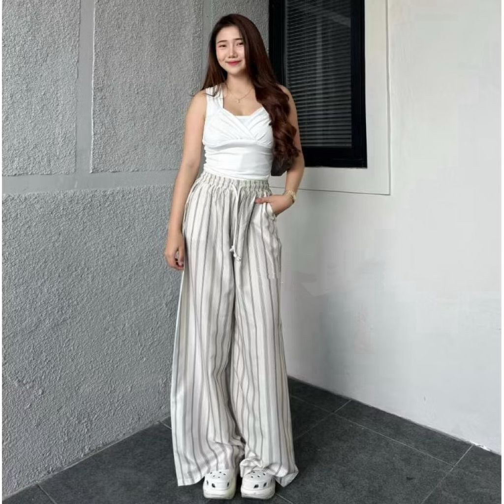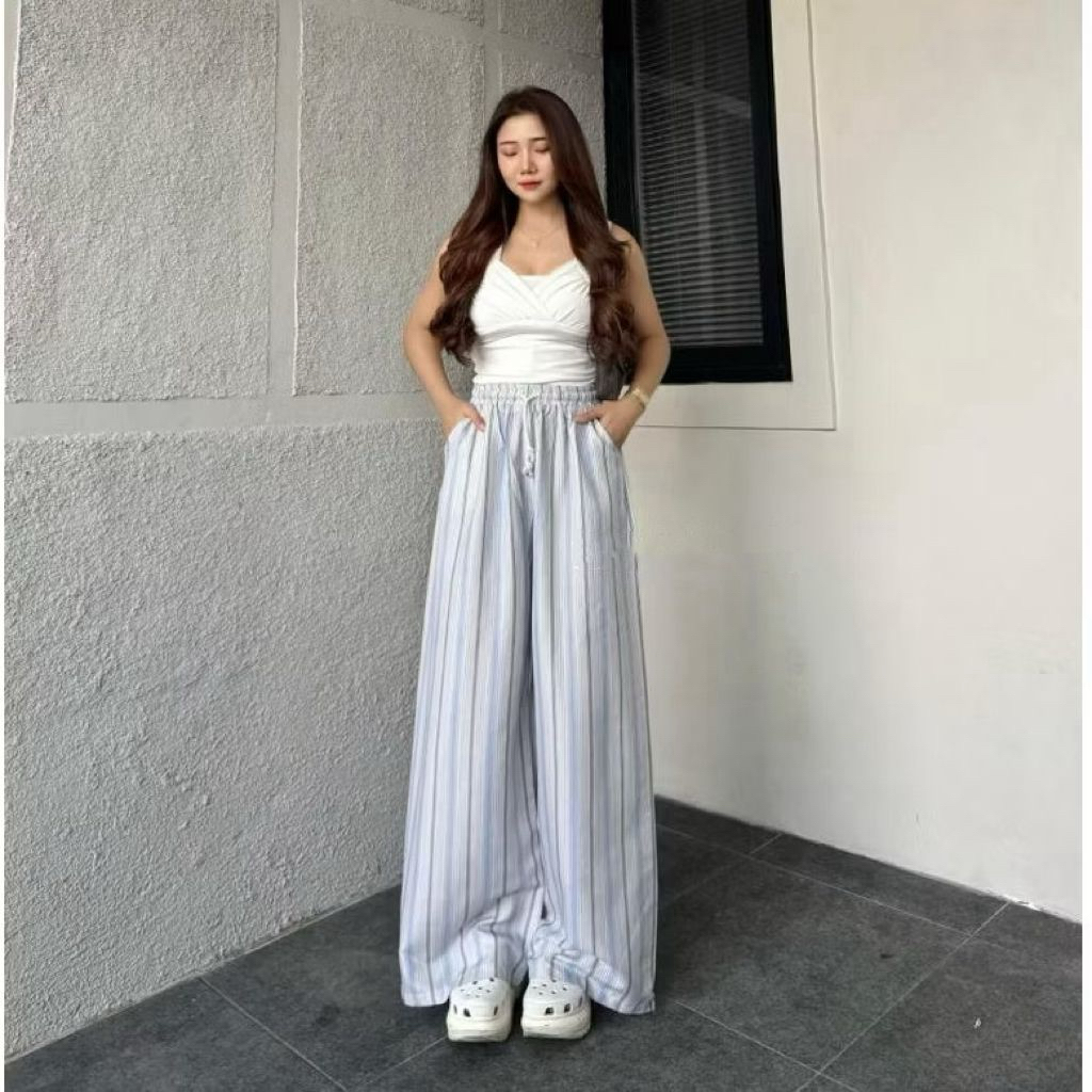 Naura Everyday Pants - Strip Pants - Celana Panjang Wanita Baggy Kantor Kuliah - Kulot Pinstripe - Celana Formal Casual