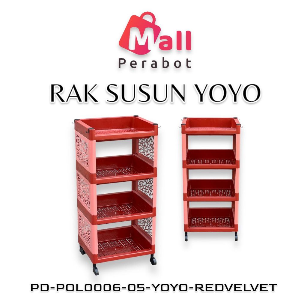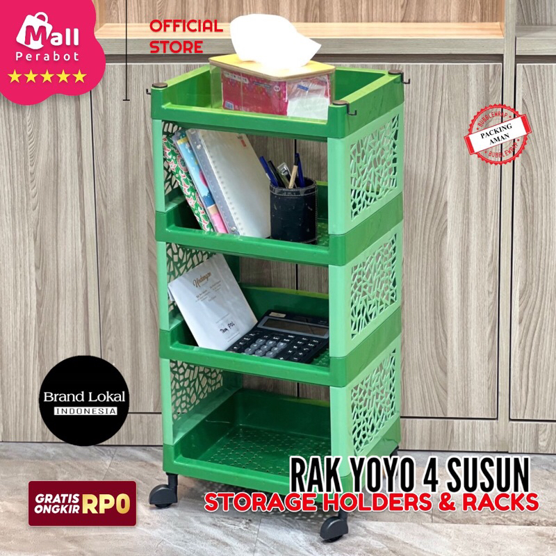 Mall perabot | Rak Susun YOYO Serbaguna 4 Tingkat Dengan Roda Kamar Mandi Plastik Portable Dapur